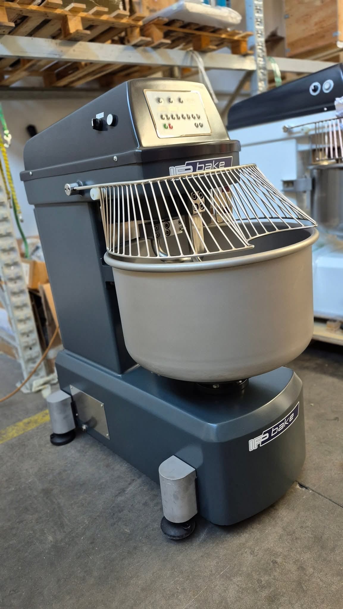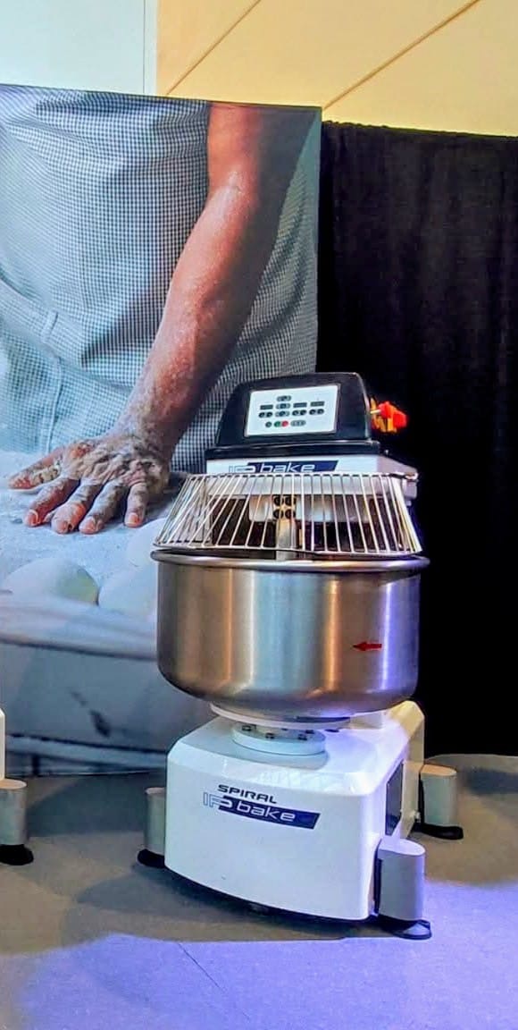 IP Bake 120 Plus spiralna miješalica za tijesto u dimenziji 850x1350xh1400 mm, težine 610kg te kapaciteta posude 9-120kg tijesta.