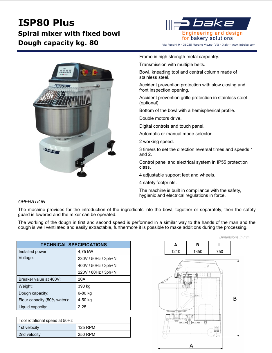 IP BAKE – ISP80 PLUS miješalica za tijesto