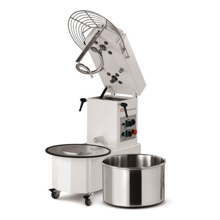Prismafood spiralni mikser s gornjom pločom i izvlačnom posudom idealna je oprema za pizzerije, pekare i obitelji. Poseban oblik spirale omogućuje dobivanje savršeno umiješanog tijesta u nekoliko minuta. Zdjela, spirala, središnji stup i zaštitna rešetka izrađeni su od nehrđajućeg čelika. Mjenjač je izrađen od motora s reduktorom u uljnoj kupki. Sva oprema je opremljena aparatom za lomljenje tijesta. Mješalice mogu biti opremljene jednofaznim motorom (IMR linija) ili trofaznim (ITR linija). Na zahtjev su dostupne dvije brzine na trofaznim motorima. Posebni naponi dostupni su na zahtjev